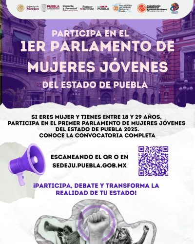 En el marco de la conmemoración del Día Internacional de la Eliminación de la Violencia contra las Mujeres y como parte de la campaña de los «16 Días de Activismo», la Coordinación Igualdad de Género de la Red Mundial de Jóvenes Políticos del Estado de Puebla, invita a las mujeres jóvenes poblanas, de entre 18 a 29 años de edad, a participar en el Primer Parlamento Juvenil de Mujeres Jóvenes del Estado de Puebla, que se llevará a cabo el próximo 12 de diciembre del presente año en las nuevas instalaciones del Honorable Congreso del Estado.