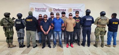 Los detenidos en esta intervención son: Roberto N., alias “El Bukanas”, quien cuenta con orden de aprehensión vigente por el delito de homicidio; Gerardo N., quien cuenta con antecedentes penales por delitos contra la salud y orden de aprehensión vigente por lesiones y robo; Saúl N., alias “El Fósil”, quien cuenta con antecedentes penales por portación de arma de fuego; Efrén N., alias “El Marañón”, quien cuenta con antecedentes por el delito de violación a la ley general de población; Juan Antonio N., alias “Charo”, así como Favián N., y Juan Carlos N.