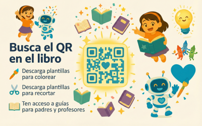 Además, cada letra incluye actividades prácticas para realizar en familia, así como un código QR con recursos gratuitos: plantillas para colorear, robots de papel y guías para padres y docentes.