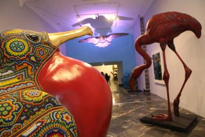 La exposición, inaugurada el pasado 17 de julio, fusiona el arte huichol con materiales contemporáneos y un poderoso mensaje ambiental. A través de esculturas monumentales decoradas con chaquira tradicional y plásticos recolectados en playas mexicanas, Menchaca invita a reflexionar sobre la urgencia de proteger los océanos.