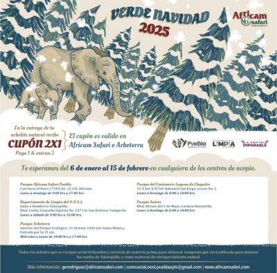 Como incentivo a la participación ciudadana, quienes entreguen su árbol recibirán un cupón 2×1 para visitar Africam Safari o Arboterra.